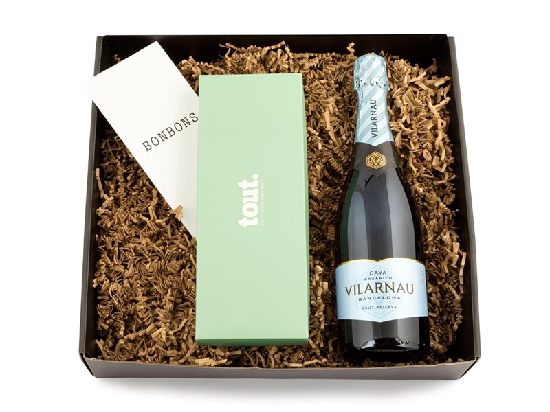 De biologische Vilarnau Cava Brut Reserva heeft een kristalheldere bleekgele kleur met een gouden gloed. Lichte tonen van citrus, groene appels en een vleugje anijs. De smaak is fruitig en droog met een milde zuurgraad. Prachtig in combinatie met onze luxe giftbox met macarons.